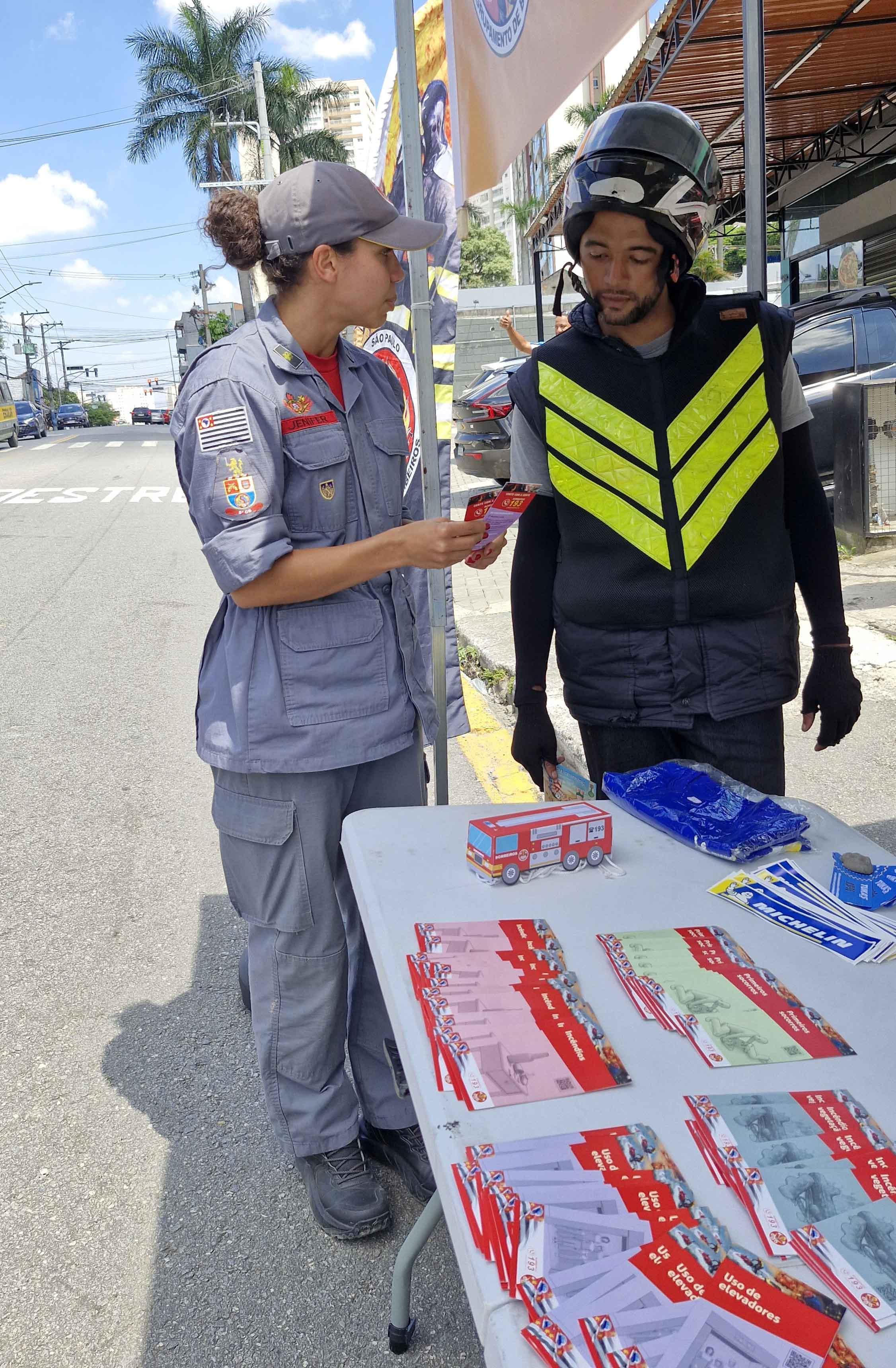 Além das orientações práticas, foram distribuídos folhetos educativos com temas diversos, como uso seguro do gás de cozinha, prevenção de acidentes domésticos, primeiros-socorros, incêndios, uso adequado de elevadores, engasgamento de bebês e incêndios em vegetação.