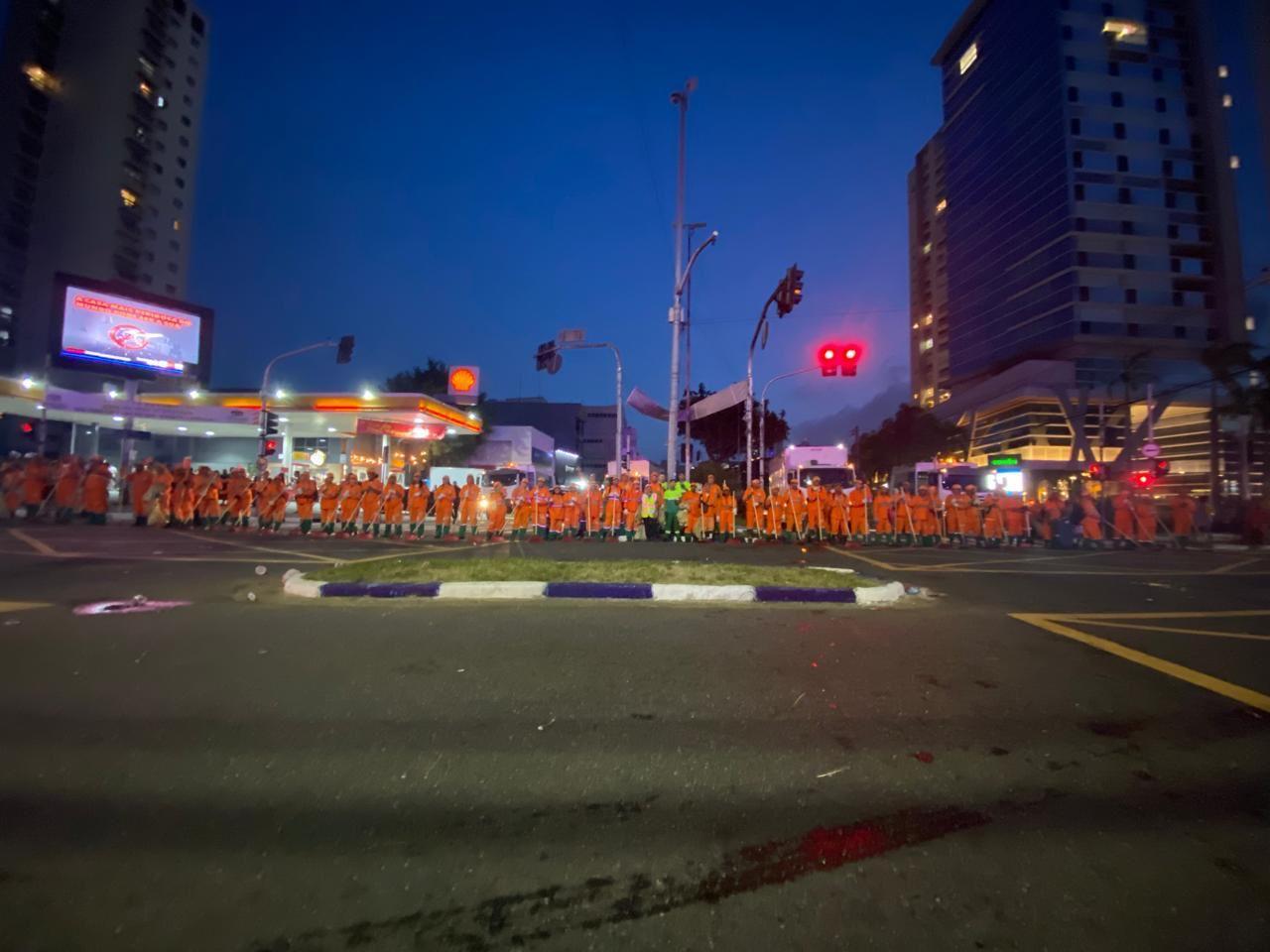Agentes de trânsito organizaram a sinalização semafórica e equipes de zeladoria efetuaram a limpeza das ruas por trechos com o auxílio de caminhões-pipa e reforço no efetivo. Guardas civis e policiais militares atuaram na dispersão dos foliões após a passagem do bloco. Praticamente toda a região central estava normalizada em questão de minutos.