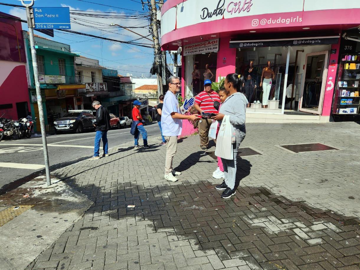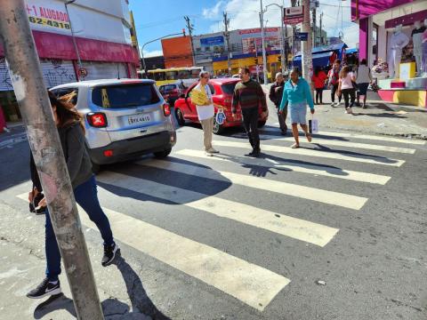 A Escola de Mobilidade Urbana, órgão da Secretaria de Transportes e Mobilidade Urbana (STMU), em parceria com o Detran-SP, promoveu nesta quinta-feira (15), no cruzamento das ruas Padre Celestino e Dom Pedro II, no Centro, uma nova ação voltada ao Maio Amarelo. Os servidores que participaram da iniciativa abordaram pedestres e falaram sobre a importância da segurança no trânsito.