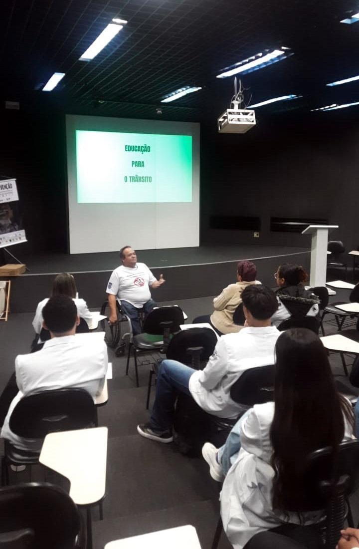 Durante o encontro, eles assistiram a palestras sobre os seguintes temas: Educação no Trânsito, com Fermino Manoel da Silva (assessor de Políticas Públicas da Semob); Fiscalização e procedimentos em situações de emergência no trânsito, com Victor Gruter (Polícia Rodoviária Federal); e atendimento de urgência, com Helder Takeo (coordenador do Samu). A programação incluiu ainda uma visita a pacientes vítimas de sinistros de trânsito internados no complexo hospitalar.
